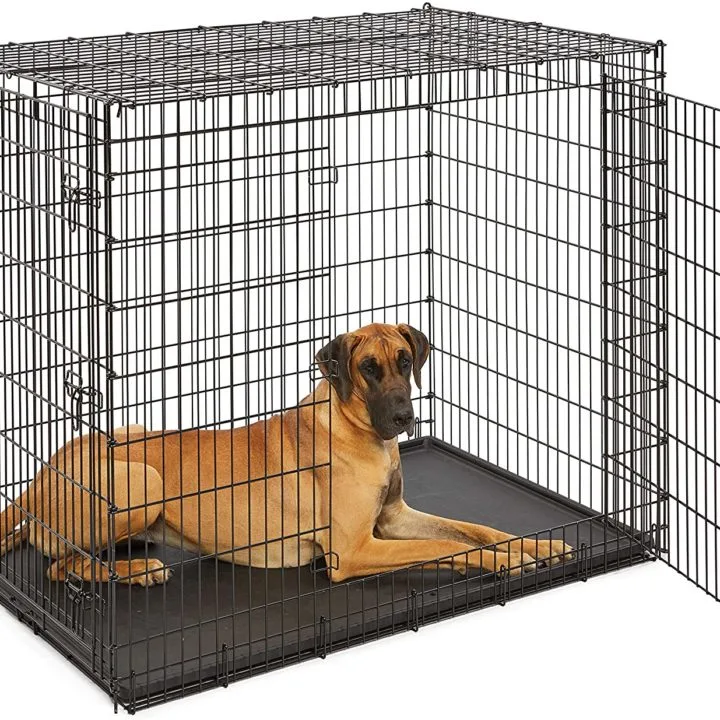 The 48″ does fold and is easier to move around if traveling, but some danes are quite squished. Sometimes if crates are needed I just suggest you keep one at the place you frequently travel (parents, kids homes, in-laws, etc) just in case. Lord knows you likely cannot commute with you dane and a 54″ crate.